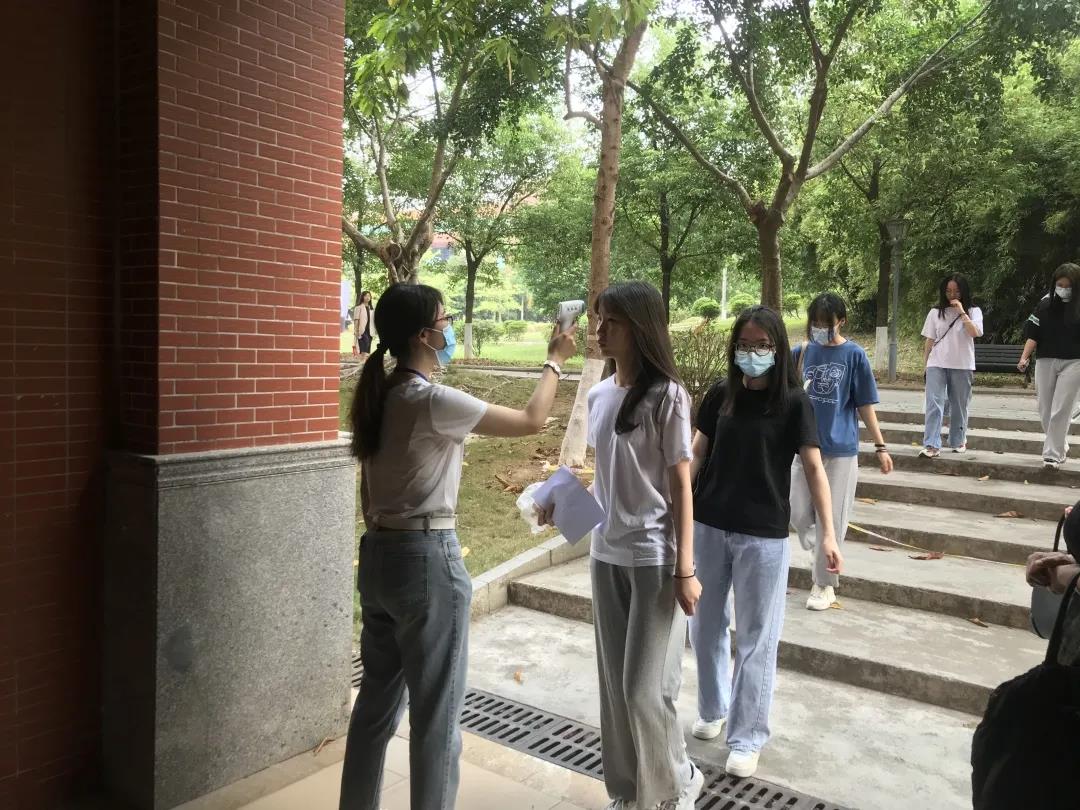 (进考场前对考生进行体温测量)