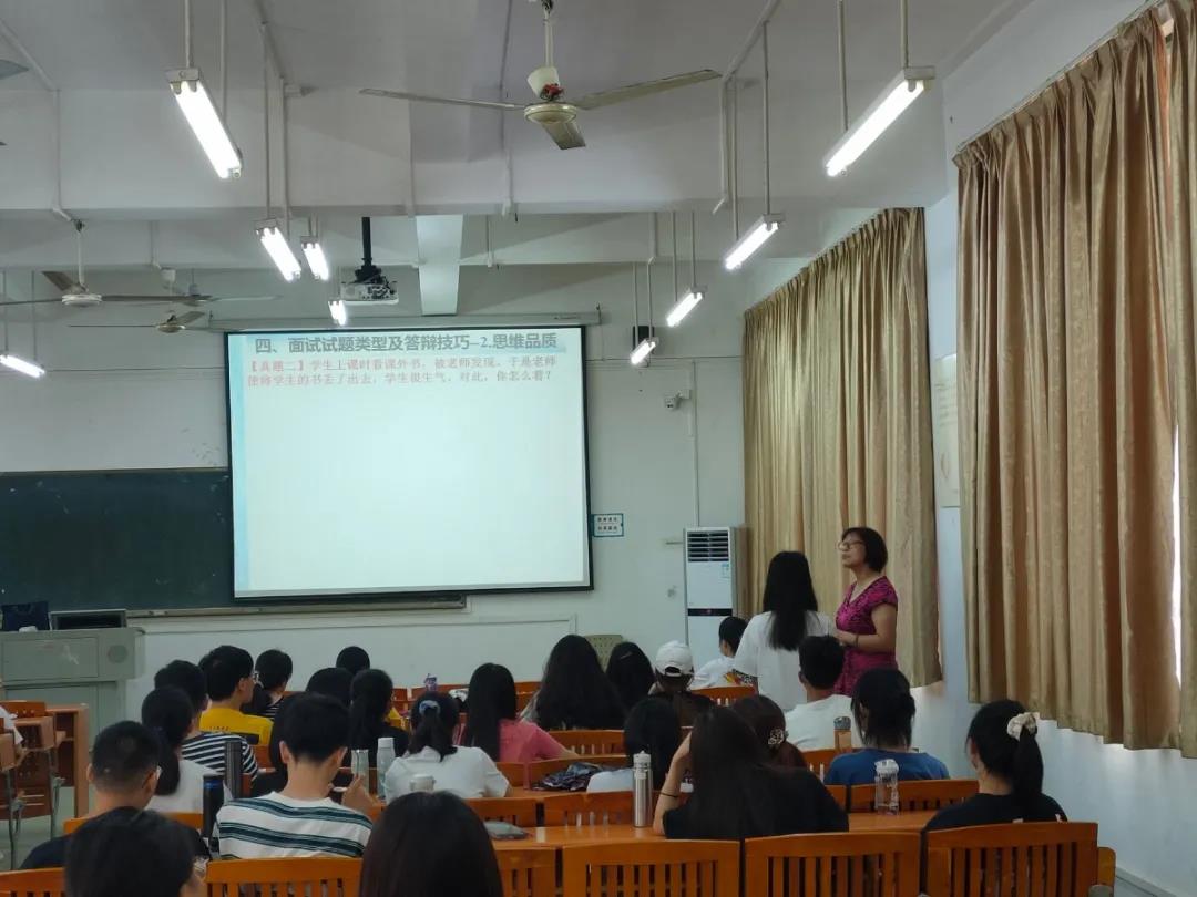 为应对5月15-16日教师资格证面试,best365中国官方网站杜秀君教授于5月7日下午16:00-17:30在励志楼B305开展“教师资格考试结构化面试概述及答辩实训”专题讲座。