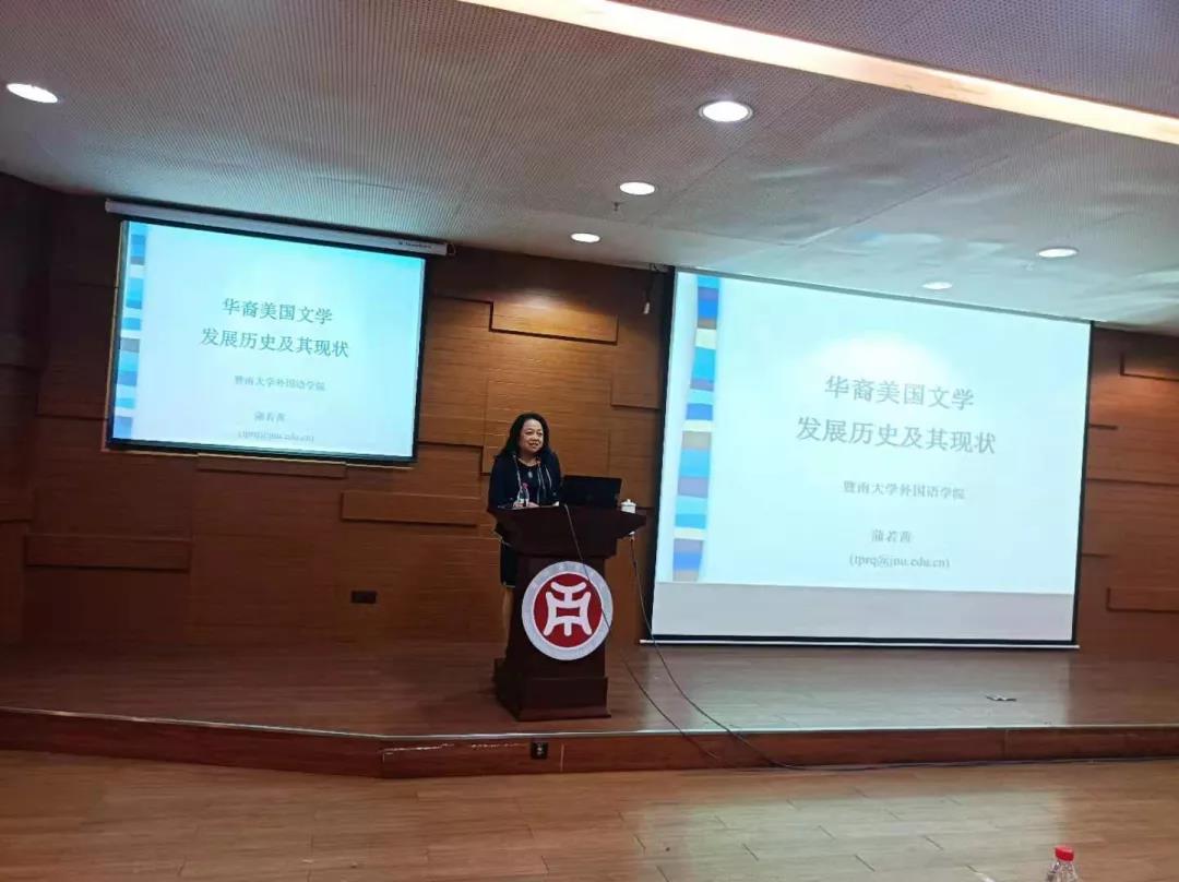 10月14日,暨南大学best365中国官方网站比较文学与世界文学专业博士研究生导师蒲若茜教授在图书馆一楼学术报告厅为best365师生举办了一场题为“华裔美国文学的发展历史与现状”的讲座。讲座由best365副院长张丽教授主持。