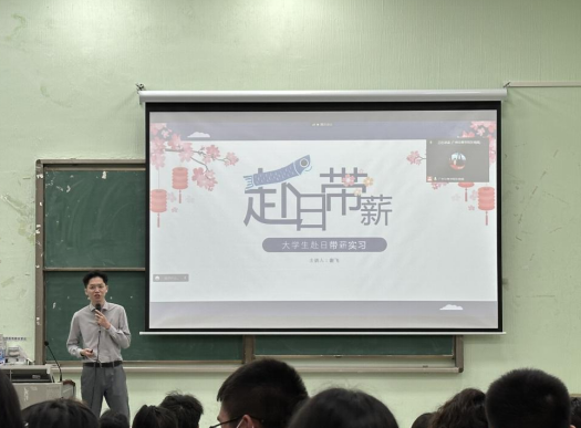 宣讲会第一项,广州伯牙国际教育科技有限公司谢飞经理向同学们介绍赴日带薪实习项目的内容。谢经理指出这个项目的本质是教育及文化交流,该项目进入中国以来,已在世界其他国家和地区展开,项目与我国高校学生人才培养计划及实习实践接轨。项目结束后,学生将会获得实习企业颁发的优秀实习生研修证书。该项目不仅能让学生深入体验日本企业的管理模式,了解日本文化,提高日语水平,拓宽国际化视野,而且对未来有意愿在日本留学或工作的学生打下基础。