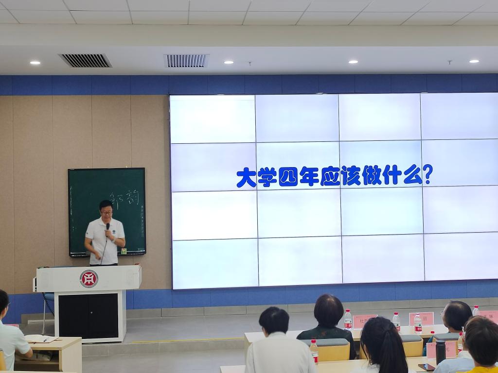 学工办副主任何顺发老师向同学们阐述了五颗心,分别为好奇心、上进心、责任心、平常心和自信心,他希望同学们坚信自己的选择,安顿自己的内心,努力学习好专业知识和技能,在大学四年的时光里学会思考,学会做人做事。