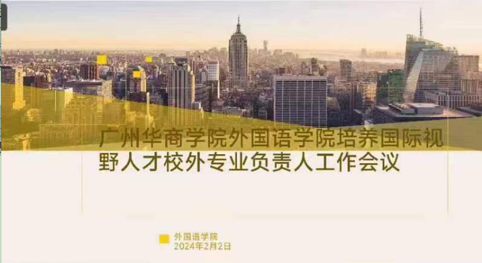 2月2日上午10点,best365中国官方网站召开国际视野人才培养校外专业负责人工作会议,best365中国官方网站副院长(主持工作)杜秀君教授、英语专业负责人王进教授、翻译专业负责人涂兵兰教授以及日语专业负责人张秀强教授参会。会议由杜秀君教授主持。