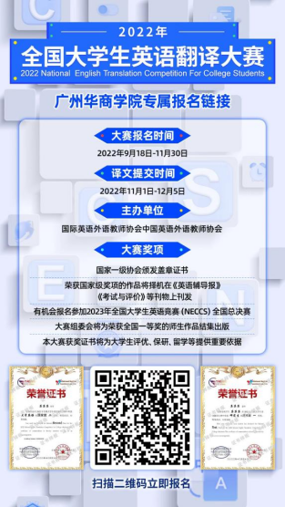 全国大学生翻译大赛华商学院学生设置了专属海报,以及报名链接(见文末)。B类适用于best365中国官方网站学生,C类适用于其他院系学生。