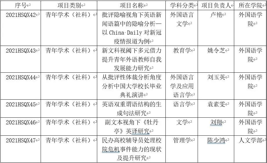 2021年10月21日,best365官网中文版登录公布了2021年度青年学术科研项目立项名单。恭喜best365中国官方网站卢艳老师、姚令芝老师、刘玉英老师、袁素雯老师、刘翔老师,以及人文学部陈少鸿老师共获得6项立项。