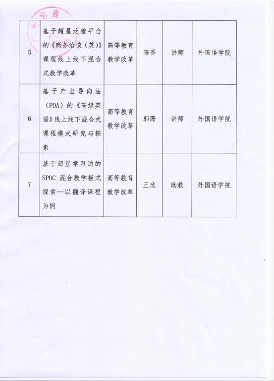 附件:外国语学院2022年度校级“质量工程”高等教育教学改革项目拟推荐名单