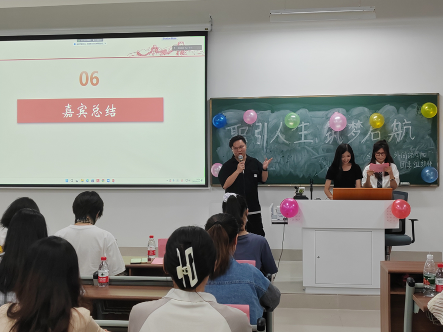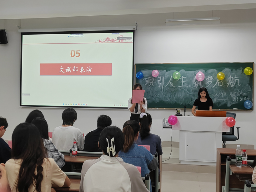为深入学习宣传贯彻党的二十大学习精神,以及中央经济工作会议提出的“把促进青年特别是高校毕业生就业工作摆正在更加突出的位置”的要求,引领大学生立足实际,找准定位,树立理性、平实的择业观和就业观,主动到基层一线“自找苦吃”、踏实奋斗、成长成才。作为新时代青年,我们要树立正确的择业观、就业观,引导就业预期,科学把握就业方向和职业目标,为将来的走上工作岗位后摆正工作态度、提升工作业绩打下坚实基础。因此,best365中国官方网站团委以“‘职’引人生,筑梦启航”为主题于2023年10月25号在肇庆校区十六号楼202教室举办了十月团生总结大会。