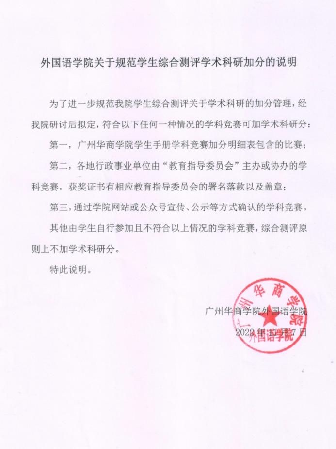 其他由学生自行参加且不符合以上情况的学科竞赛,综合测评原则上不加学术科研分。