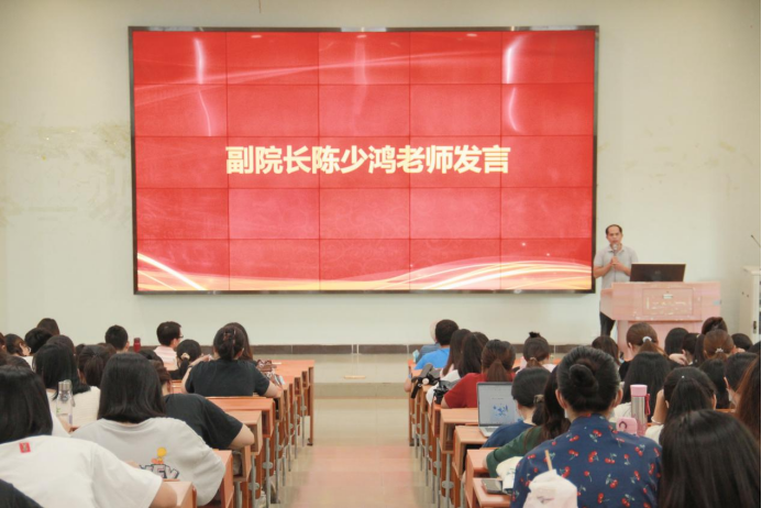 然后,党委副书记兼副院长陈少鸿老师讲话,他强调了纪律的重要性,在校要严格遵守学校规章制度。同学们在新生活中仍要把学习作为首要任务,同学之间要相互包容、体谅、帮助、交流、进步,在校园内共同营造和谐的学习和生活氛围。
