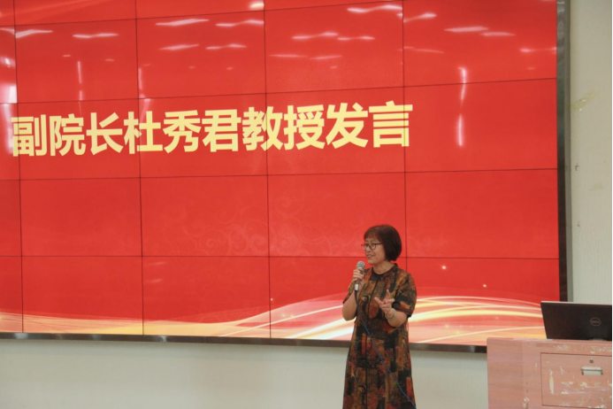 紧接着,副院长杜秀君教授发言,她给同学们讲述了她朋友的人生故事,勉励同学们不要妄自菲薄,继续刻苦学习专业知识,提高技能本领,早日确定好自己的目标,做好职业生涯规划,向着目标不断前进,在今后的日子里成为更加优秀的人。
