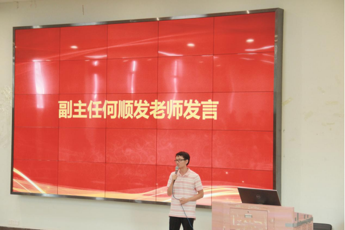 接着,学工办副主任何顺发老师讲话,希望同学们能够迅速融入新环境,坚守初心使命,鼓励同学们艰苦奋斗,脚踏实地,知行合一,最后送上“长风破浪会有时,直挂云帆济沧海”这句话勉励大家,祝同学们在新的征程扬起风帆,勇往直前,学有所成。