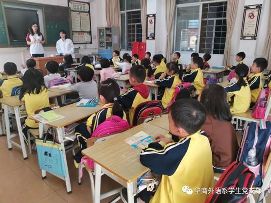 2019年11月19日下午,为了促进中小学生与大学生的交流,提高中小学生对大学生活以及美化未来的能动性,以坚持科教兴国战略和人才强国战略为前提,在中国共产党“全心全意为人民服务”宗旨的号召下,广东财经大学华商学院外语系学生党支部号召全体学生党员积极参与在城丰小学开展的指导活动。