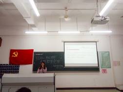 2019年11月13日星期三晚上六时,外语系第二党支部的党员同志们在励志楼A306进行“不忘初心、牢记使命”主题党课的学习,党员同志们按照党员小组划分就坐,本次主题党课由外语系教工党支部书记江嘉丁同志围绕“不忘初心、牢记使命”的主题进行教授学习内容。