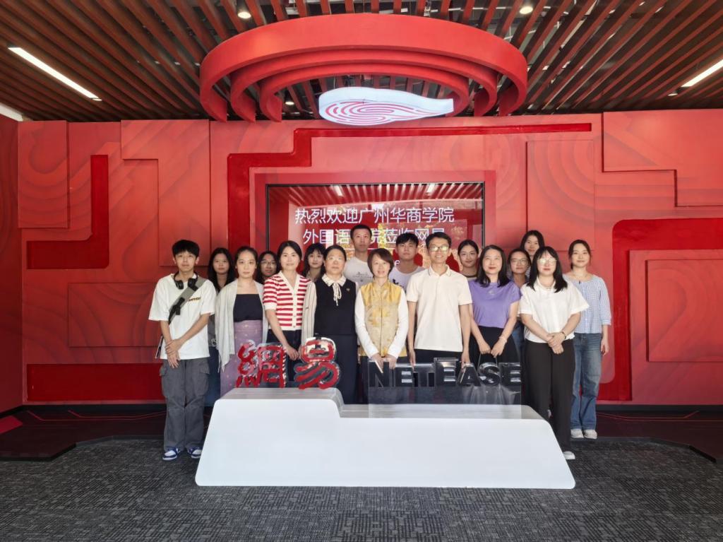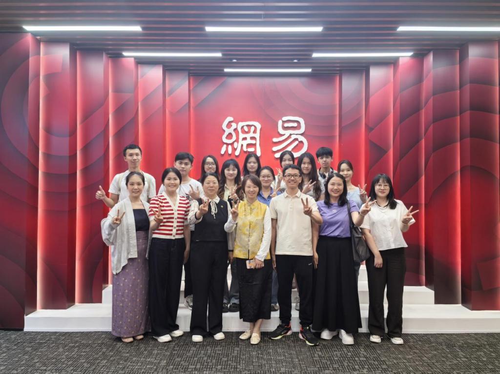 2025年5月12日下午,best365中国官方网站师生前往网易总部开展认知实习暨产教融合基地揭牌仪式。网易有道全国高校数字化负责人李征华、华南区咨询总监王伟邦、华南区总经理助理梁婷之,best365中国官方网站副院长甄玲、副院长何顺发、英语系主任杨润秀、副主任谢瑶、熊梅老师、赵曼翡老师、肖茜老师及英语系实习学生共同参与本次活动。