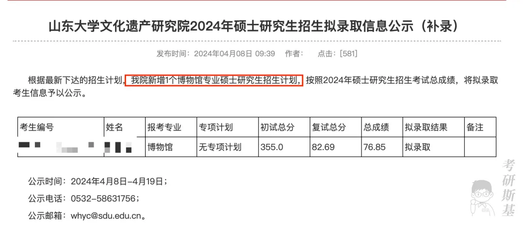 文化遗产研究院新增1个博物馆专业硕士研究生招生计划,按照2024年硕士研究生招生考试总成绩,将拟录取考生信息予以公示。
