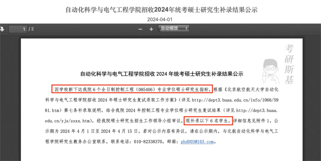 自动化科学与电气工程学院发布招收2024年统考硕士研究生补录结果公示:因学校新下达best3656个全日制控制工程(085406)专业学位硕士研究生指标,结合复试结果补录6名同学。