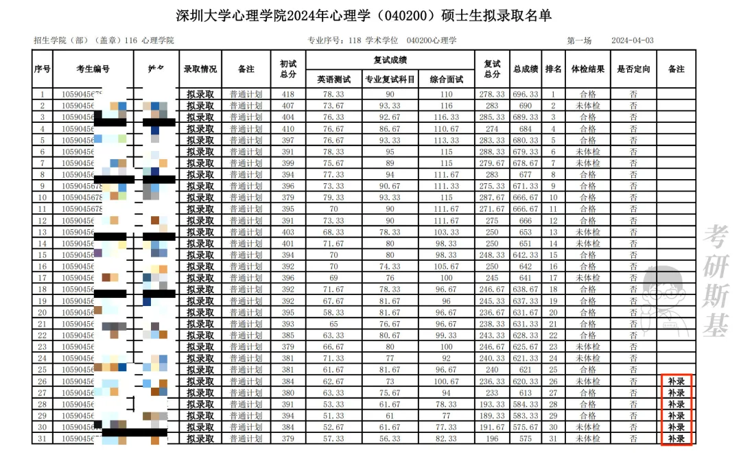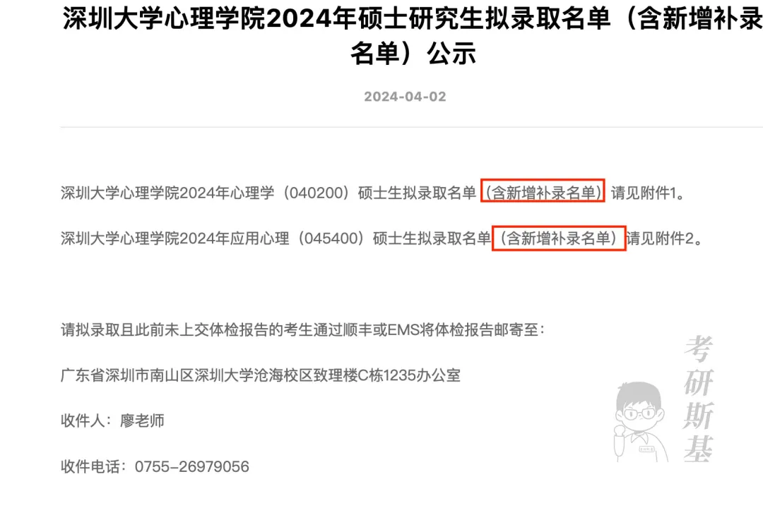 心理学院心理学专业补录6名考生,应用心理专业补录1名考生,请拟录取且此前未上交体检报告的考生通过顺丰或EMS将体检报告邮寄至学校。