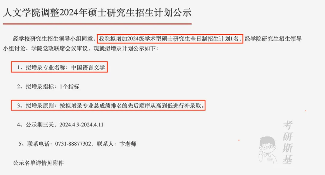 人文学院拟增加2024级学术型硕士研究生全日制招生计划1名,拟增录专业为中国语言文学,按拟增录专业总成绩排名的先后顺序从高到低进行补录取。